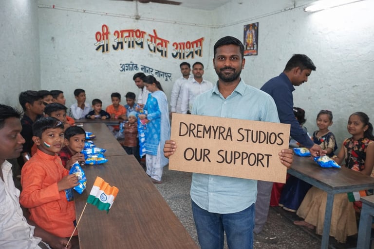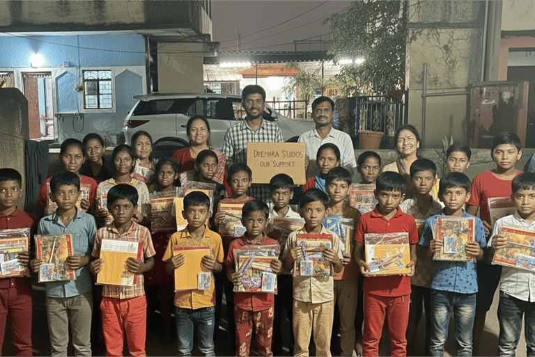 Our journey at Dremyra Studios is shaped not only by creative growth but also by social responsibility. As we collaborate with artists and clients, we ensure that our work allows us to support children living in ashrams. This support helps with essential requirements that improve their daily routines and overall well-being. We do not attach numbers or publicity to these efforts — the impact matters more than attention.